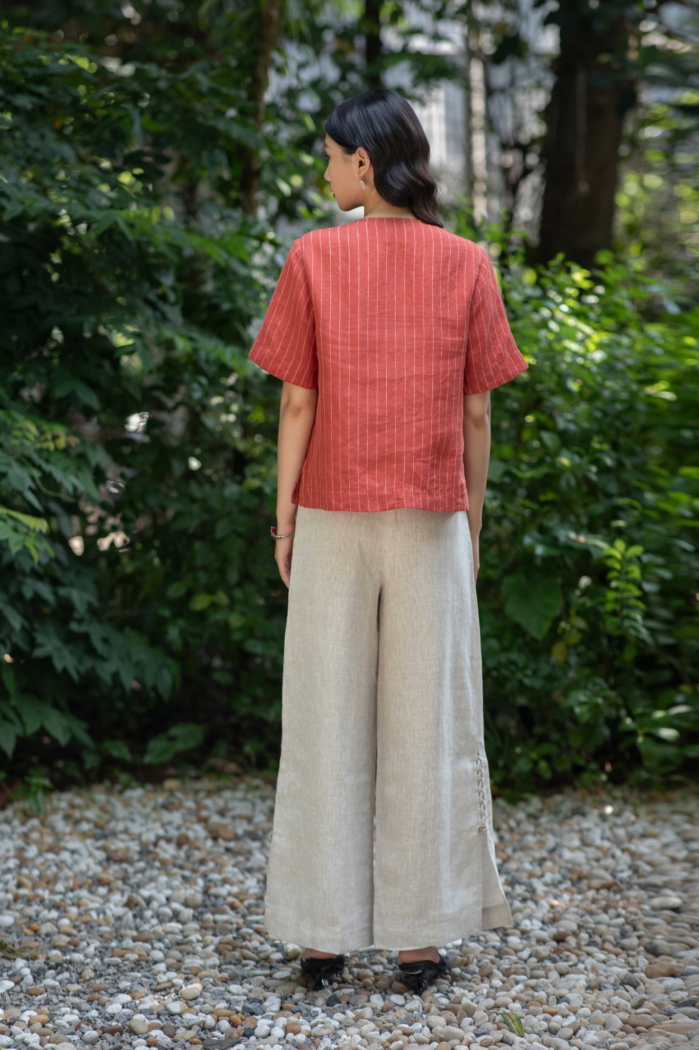Áo cổ tam giác - Kẻ đỏ - F