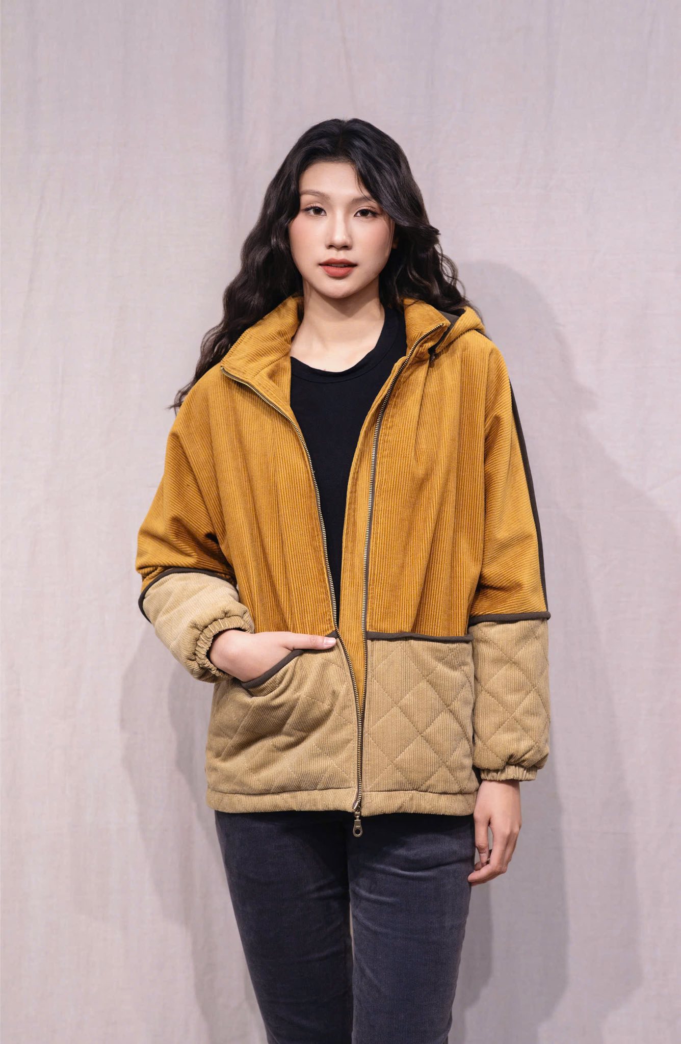 Thân trước 2 túi ẩn qua đường can ngang.