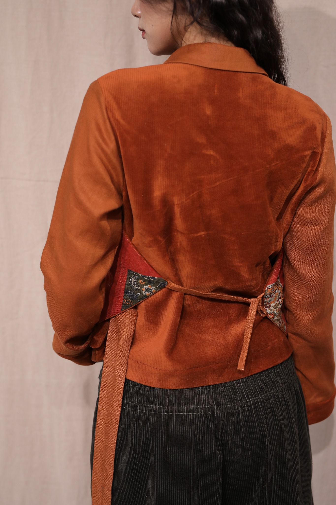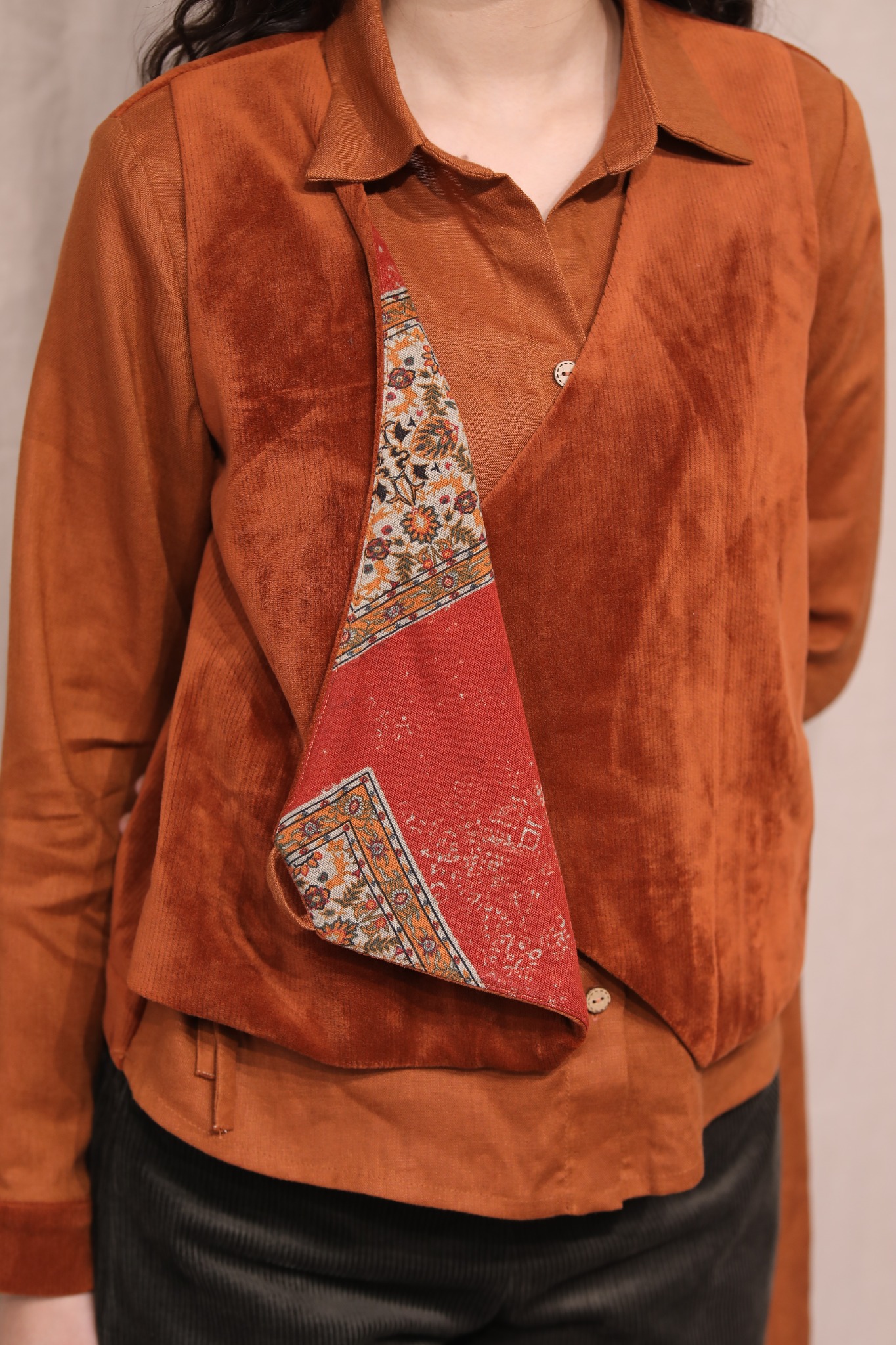Áo sơ mi gile nhung - Cam đất