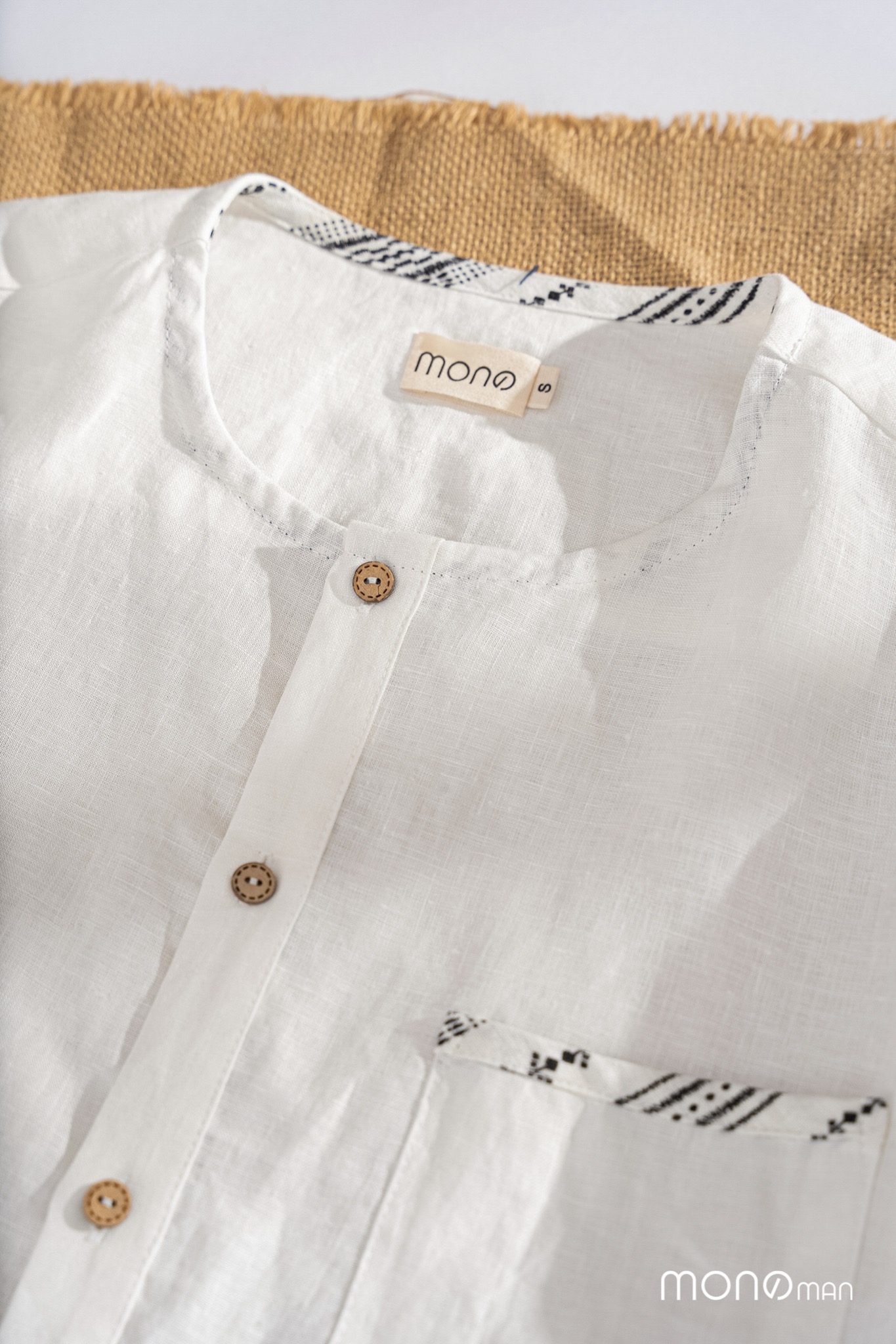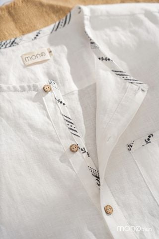 Mẫu sơ mi cổ tròn, tay dài mang hơi hướng phóng khoáng, trẻ trung, được may từ chất liệu linen thoáng mát
