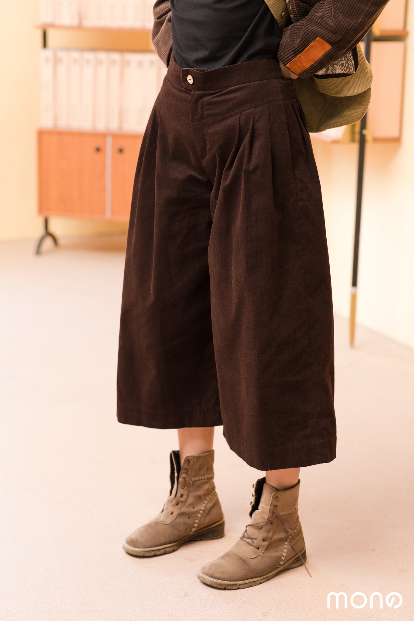 Phong cách trẻ trung, năng động. Quần ống rộng, dáng lửng phù hợp với mọi dáng người. Dễ phối với các kiểu áo và giày. Phần hông quần tạo điểm nhấn bằng bảng màu vải chạy dọc, điểm nhấn lạ, đậm cá tính MONO. Sản phẩm phù hợp để mặc đi chơi, đi du lịch. Đi làm các chị có thể sơ vin kết hợp với giày có gót và sơ mi cùng với phụ kiện để có phong cách lịch sự nhưng vẫn không kém phần cá tính.