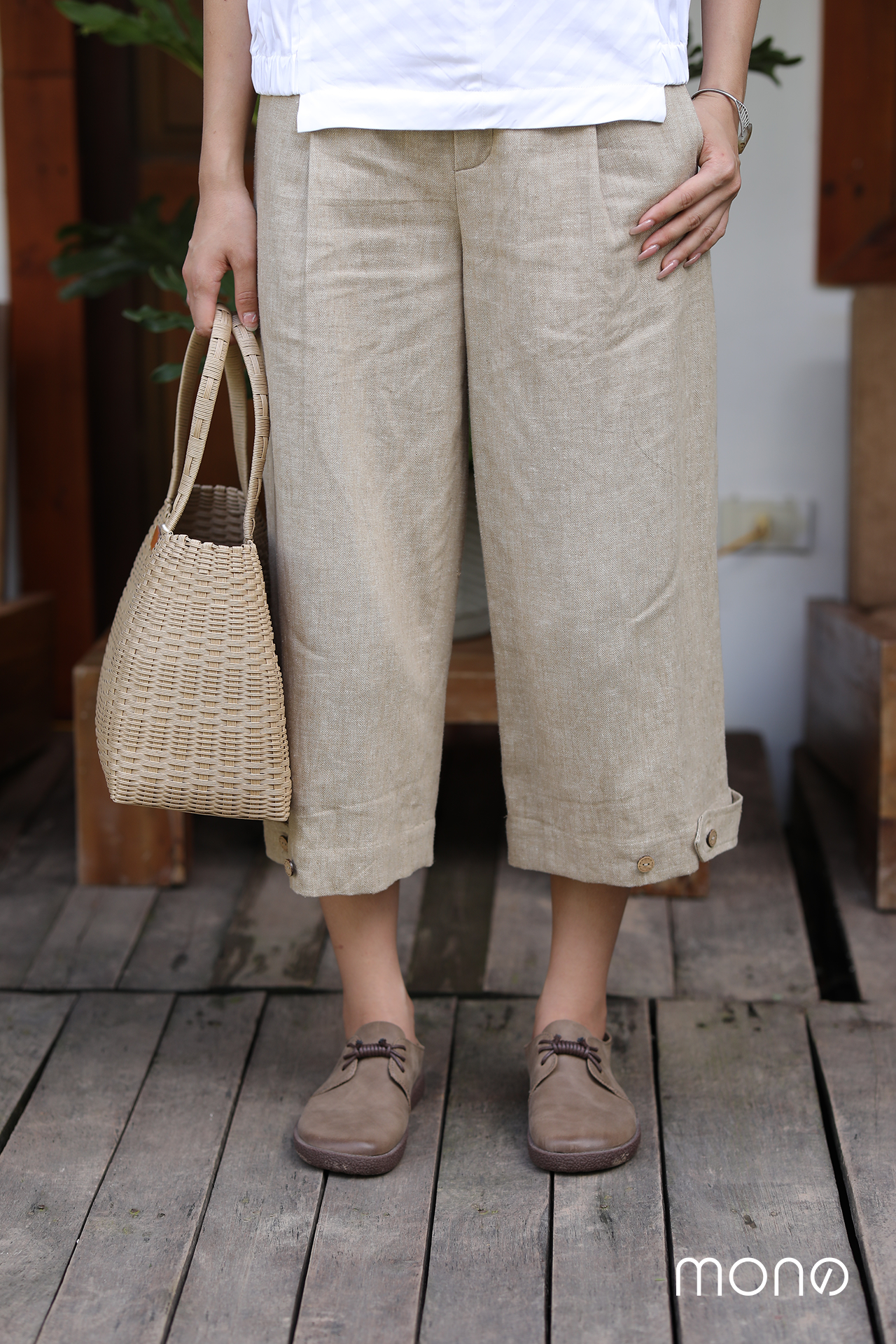 Quần form suông, ống rộng vừa phải cùng chất liệu linen sợi dệt xương cá đặc biệt