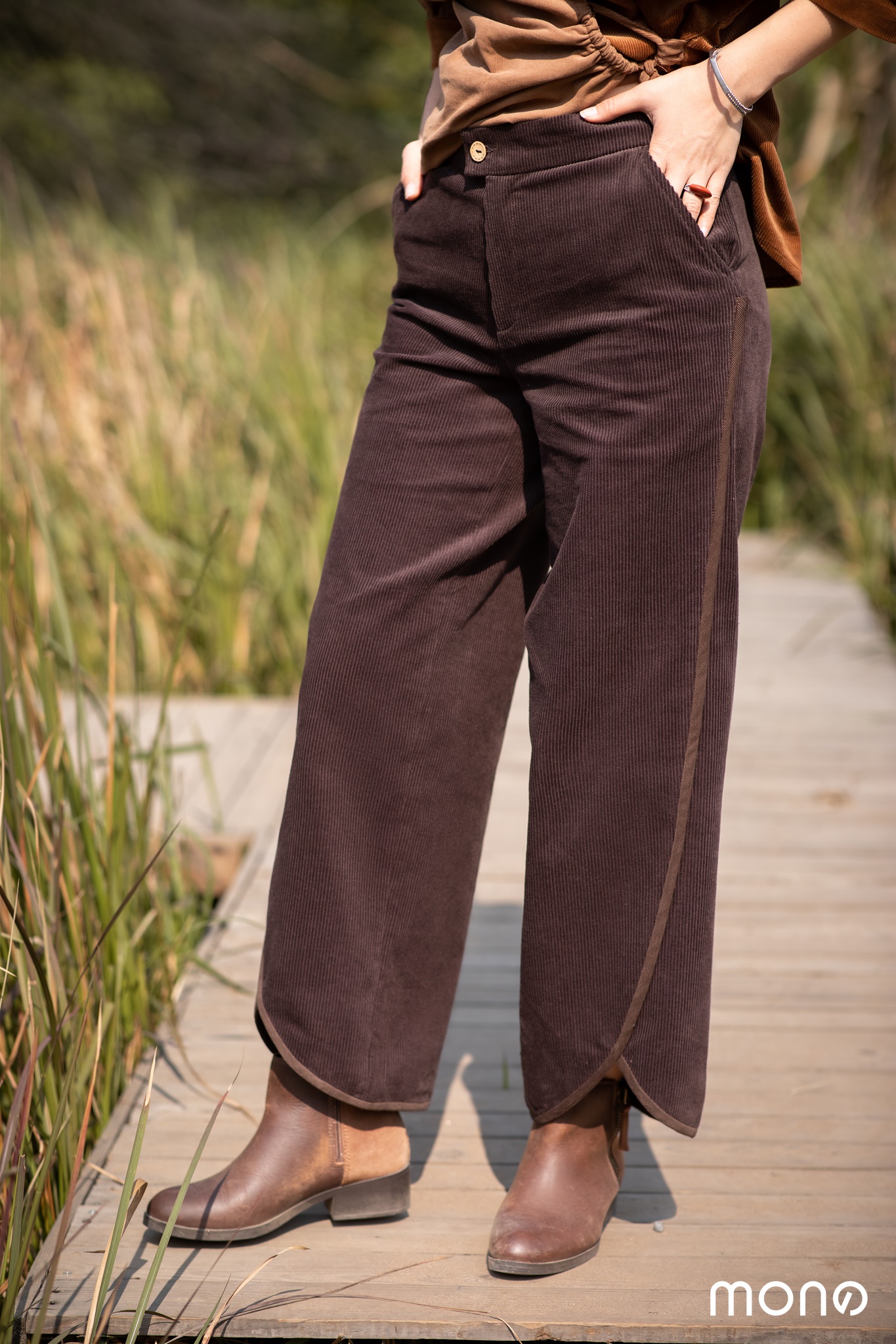 Quần nhung ống đứng basic được cách điệu bởi được đường cắt xẻ ở phần gấu tạo điểm nhấn cho sản phẩm