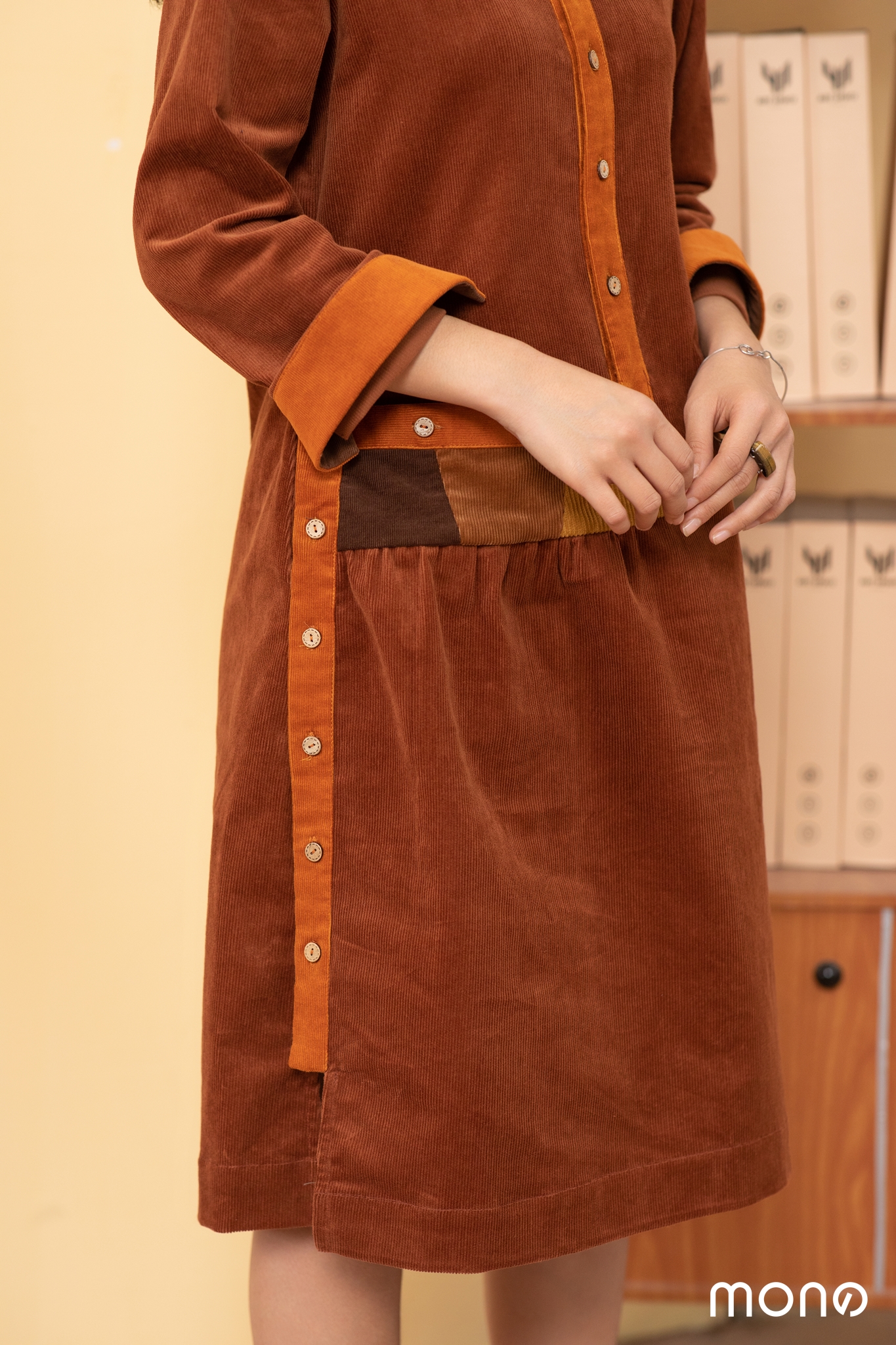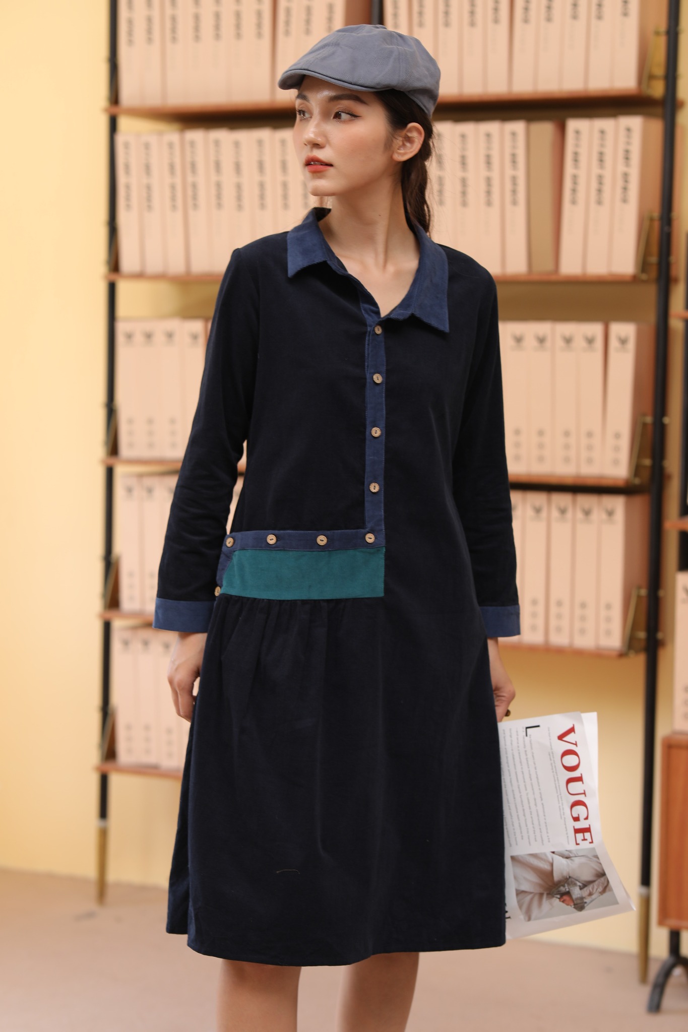 Váy sơ mi được thiết kế dáng cổ Sole cách điệu
